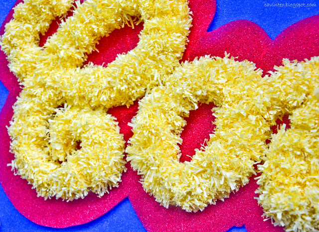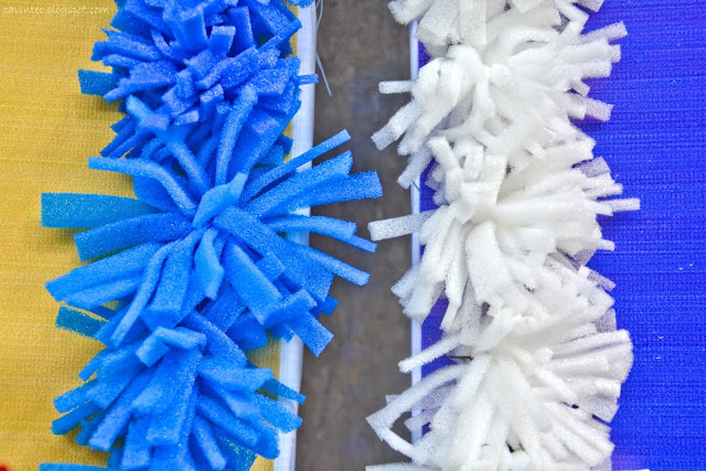 Strips of styrofoam were bundled up to have that "pom pom" feel.