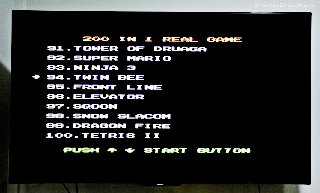The console i purchased came with a 400-game cartridge and you can imagine scrolling through the hundreds of games, in seek of the ones i enjoyed playing so much (to the point of addiction) when i was a kid. First game; Twin Bee!