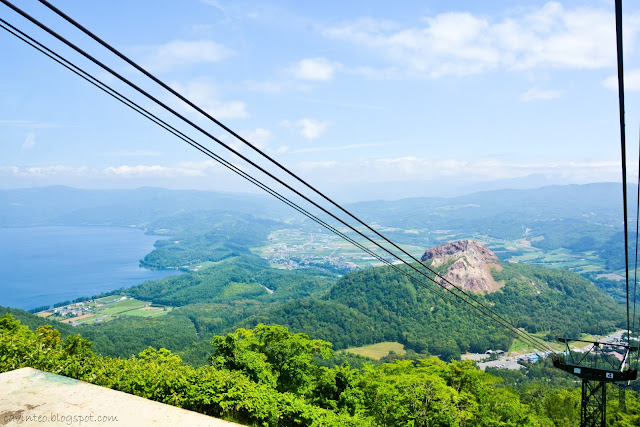 Towards our accommodation at toyako onsen town and the lakeside view (2nd and 3rd photo) with Mt. Usu at the back! Don't play play; this Mt Usu is an active volcano and its last eruption was in year 2000.