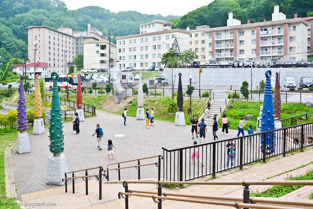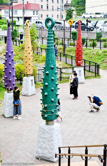Sengen Park - interestingly as you can see, there were 8 over-sized spiked cudgels dotted over this tiny park and with each of them painted a different color, it's a visual attraction that beckons you to come nearer for a closer look.