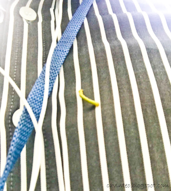 I got a shock obviously as i am just thinking of two worst-case scenarios; either bird shit or a snake. While it's neither; i thought for a moment that the longish thing on my shirt was a teeny weeny baby snake and that's definitely not a good start to the morning!