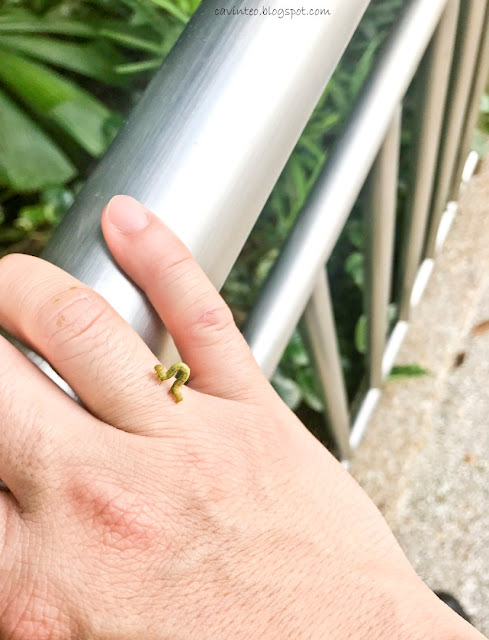 Anyway, there's no way i can keep the caterpillar even if i have taken a liking to it and as per standard practice (as i did with another caterpillar found in my office); i released it to the great outdoors. Not sure if i am being sensitive but the cute fellow initially didn't seem like it wants to leave the comfort of my hand.