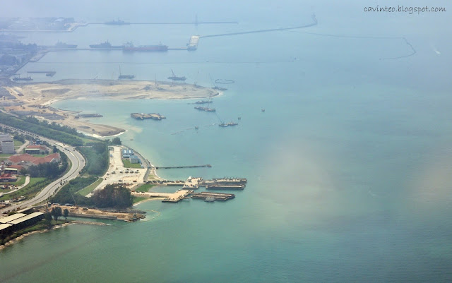 The above was a typical picture after the plane departs from Singapore's Changi International Airport since there are only two runways at the moment; you can see the naval base with a number of docked landing ship tanks and frigate.