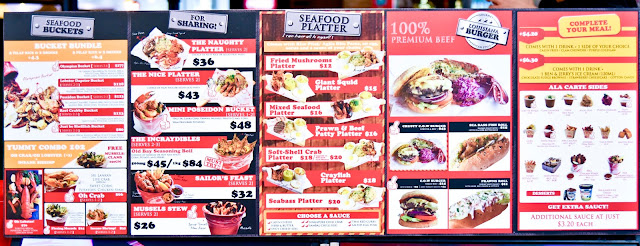 Anyway, C.O.W offers Louisiana-style seafood cuisine and good news for my Muslim friends; it's halal certified! To drive in the fact that seafood is the star, live crabs were put in glass tanks to capture the attention of passersby. If you ask me, the one crab in each tank didn't attract as much attention as, once again, the big C.O.W sign.