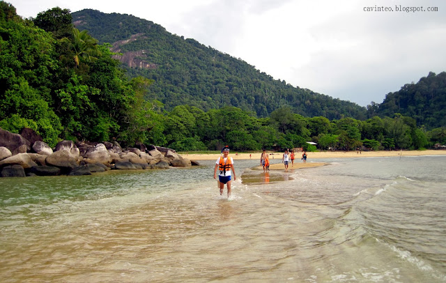 Depending on the tide, you might be able to make use of the sandbank to walk across to the island without wetting your pants. This would not pose a problem for snorkelers who will be wet anyway but for people like my mom who just wants to hide herself under the brolly decked in summer dress, suntan lotion and sunglasses; it can be a big issue!
