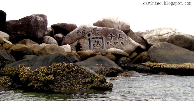 A simple act of vandalism can add so much character to the numerous boulders surrounding the island although i don't cordon such behaviour! The funny thing was that i could not even comprehend the pronunciation and meaning for the two Chinese characters.