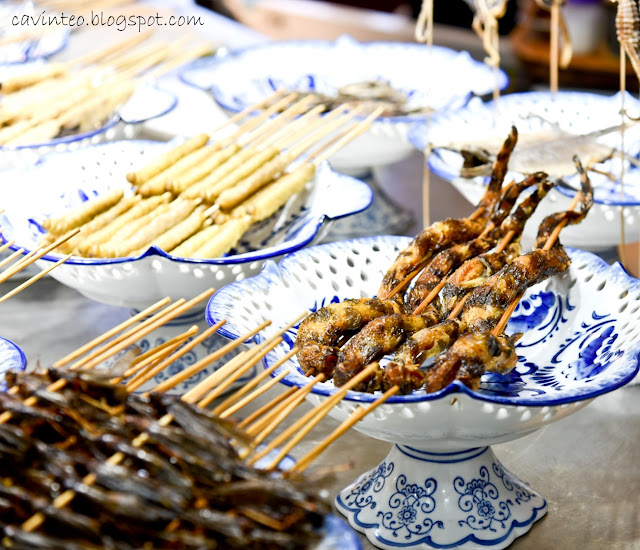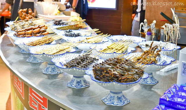 Beautifully displayed with exquisite looking bowls housing sticks of delicacies, i took a glance to see what i should try but there were so many to choose from; e.g. scorpions, spiders, centipedes and even seahorses and starfishes!