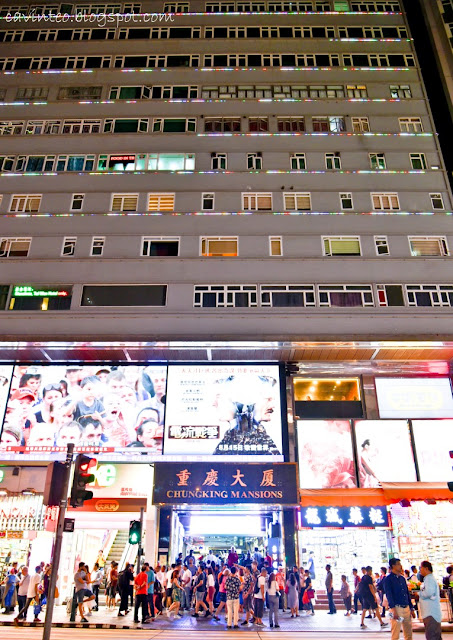 Chungking Mansions; made famous internationally by director Wong Kar-Wai, it is said to have an atmosphere similar to the now-demolished Kowloon Walled City.