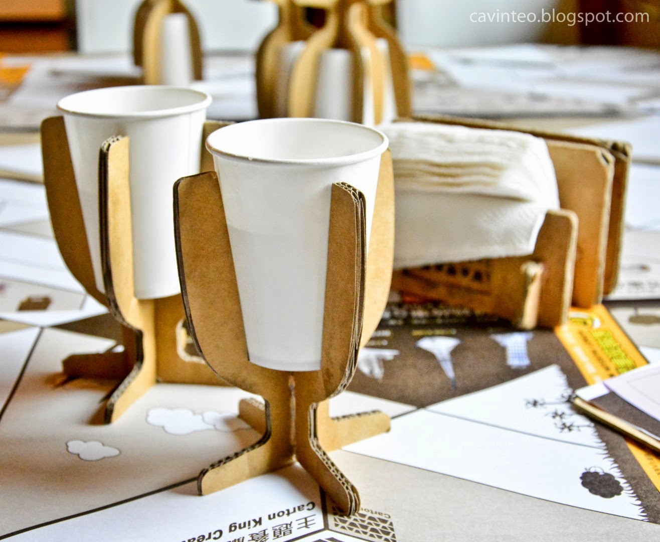 Cup holders were just one of many examples even though the paper cup would have been easier to hold without it. Increasing the center of gravity would have made the cup extremely vulnerable to toppling over. Not exactly a happy scenario should your phone be right next to it.
