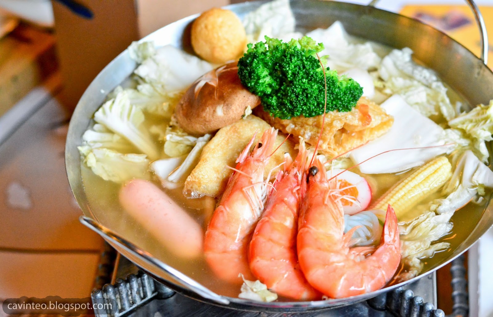 You can choose from three types of broth; Japanese style fish soup, Hokkaido concentrated milk soup and tomato kimchi soup. One meat out of the following choices; boneless beef short rib meat slice, sirloin beef slice and Taiwan snowflake pork slice. Beverage (choose from honey tea, honey green tea and hot oolong tea) was also included.