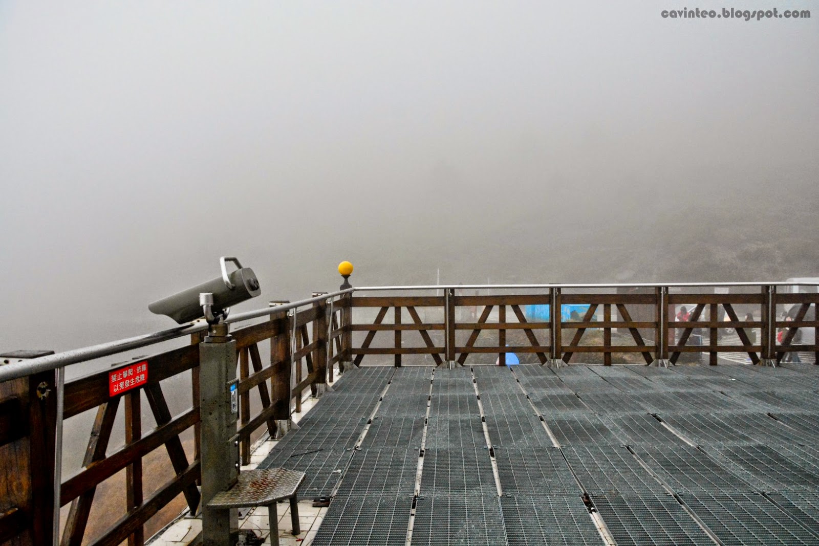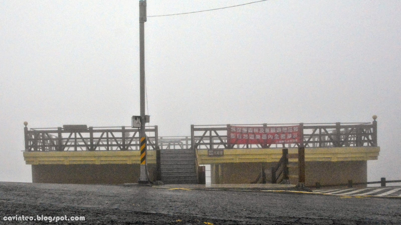 Viewing platform that was shrouded by fog.