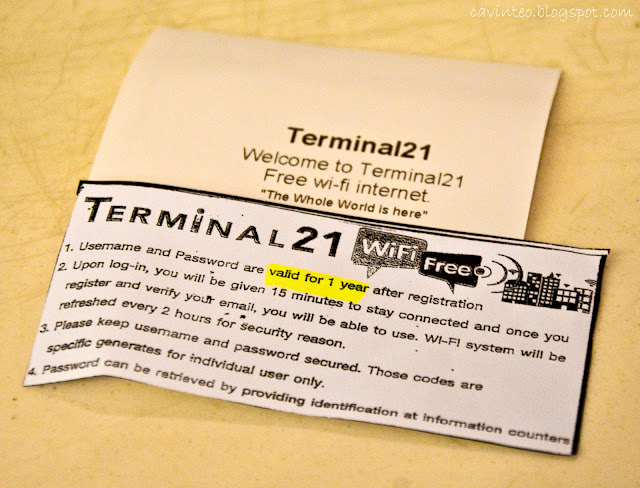 For those who visit Terminal 21 on a daily basis, do register for a free wifi account at the customer service counter. It's valid for one year and connection was quite good!